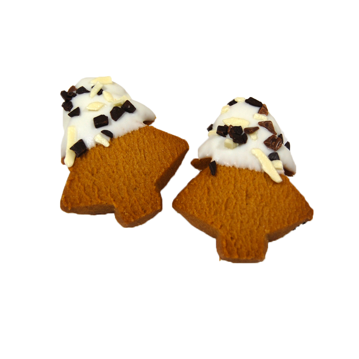 Alberello di frolla con zenzero e cannella decorato con scagliette ai tre cioccolati.