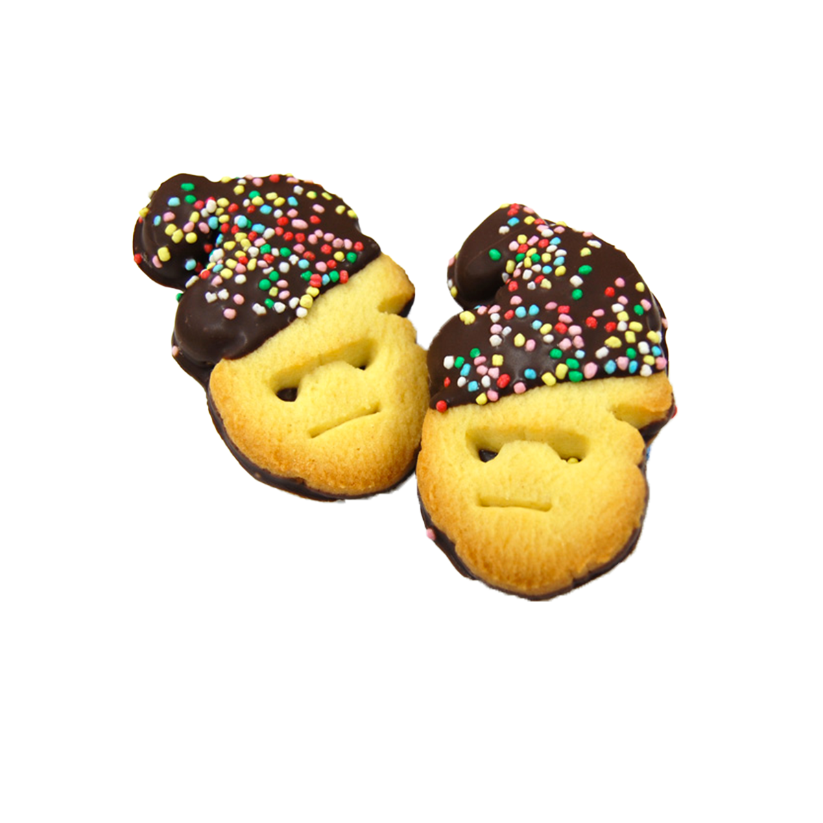Babbo Natale di frolla glassato con fondente al cacao e decorato con momperiglia colorata.
