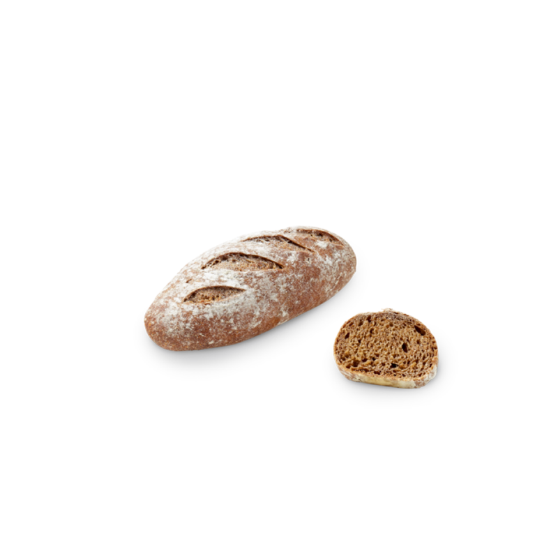 Bocconcino di pane a base di farina di segale macinata a pietra. Note di humus, funghi, spezie e albicocca. Gusto di miele e spezie.