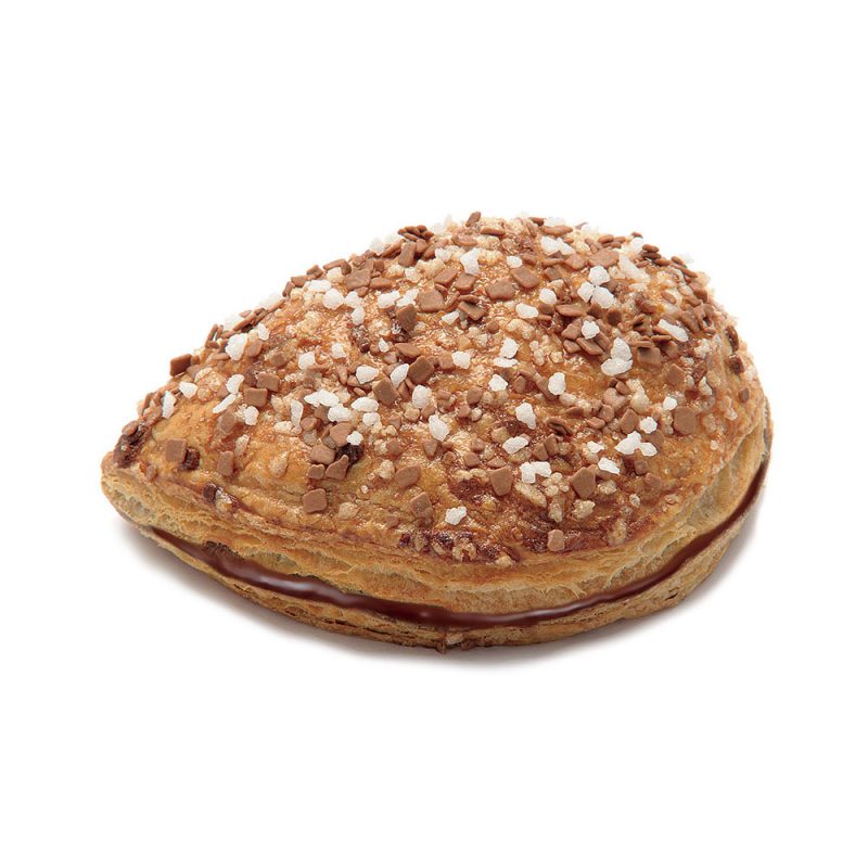 Deliziosa pasta lievita dalla forma a mezzaluna ripiena di cocco e cioccolato e decorata con scagliette di cioccolato.