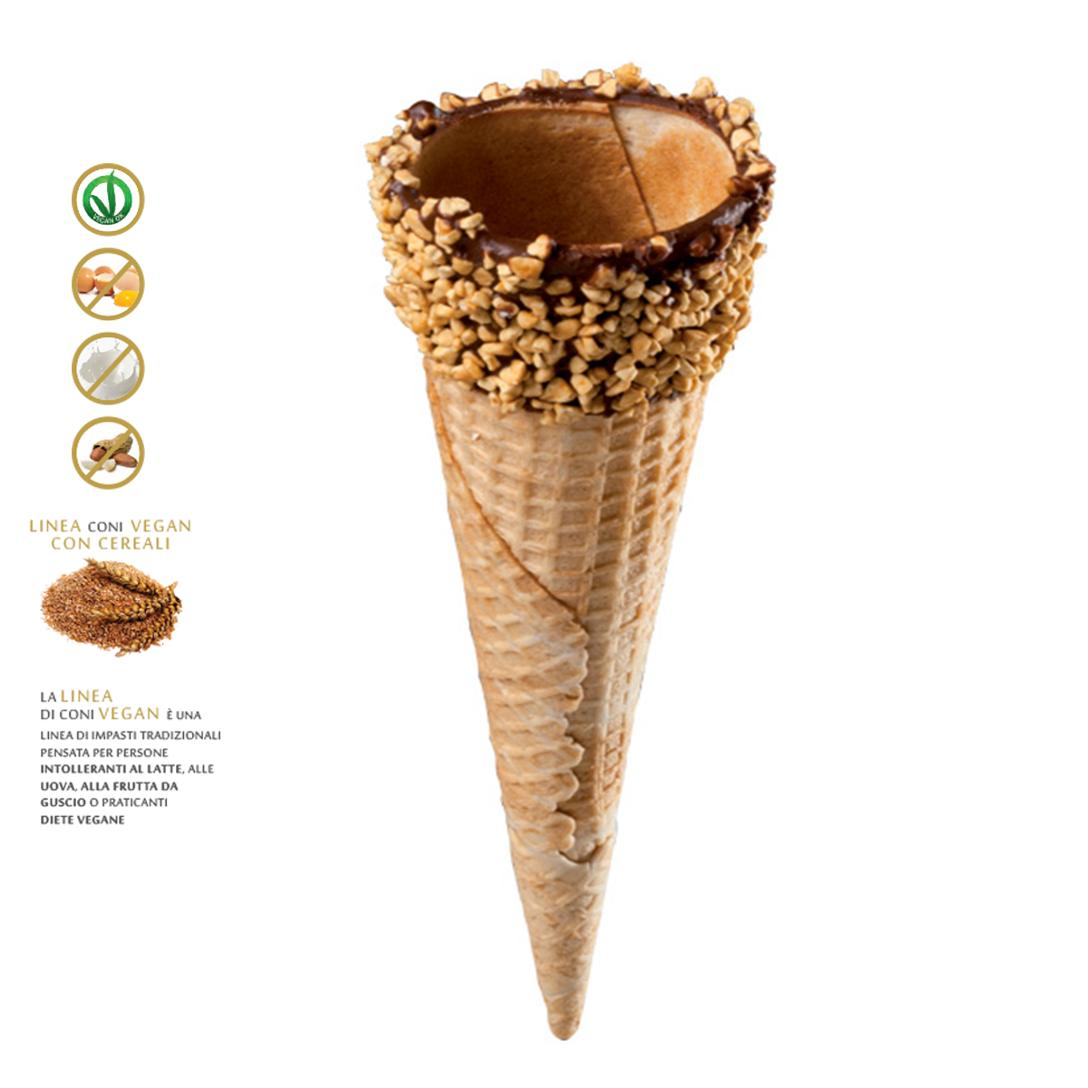 La linea di coni VEGAN con CEREALI è una linea di impasti tradizionali pensata per persone intolleranti al latte, alle uova, alla frutta da guscio o praticanti diete vegane.