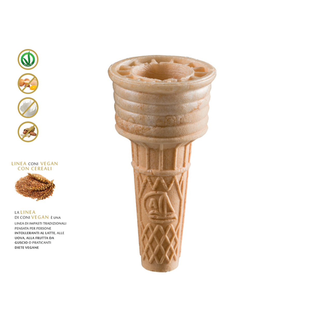 La linea di coni VEGAN con CEREALI è una linea di impasti tradizionali pensata per persone intolleranti al latte, alle uova, alla frutta da guscio o praticanti diete vegane.