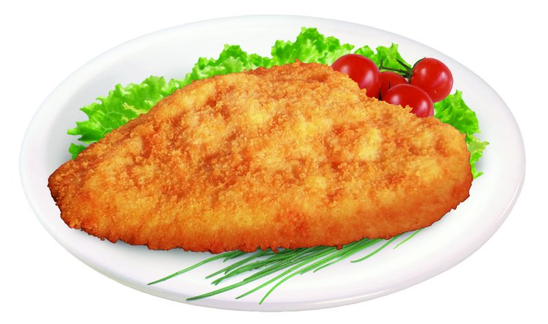 Nuova cotoletta impanata 100% filetto di pollo, con la forma di un vero petto di pollo e tutto il vantaggio del “peso garantito”.