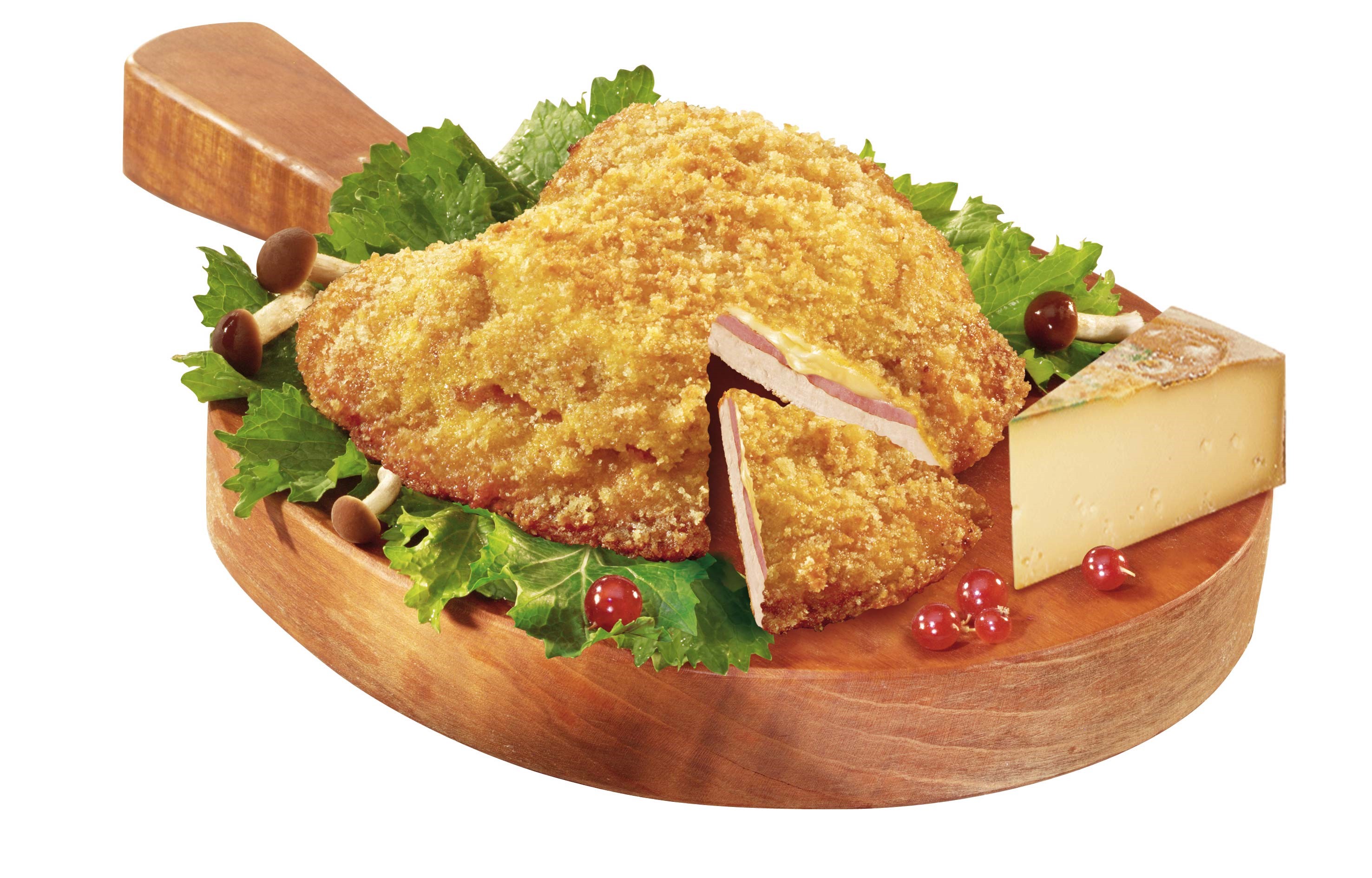 Capolavoro da grande chef, questa appetitosa porzione 100% filetto di pollo, con gustoso top di prosciutto e formaggio filante, avvolta in un’unica e super croccante panatura.