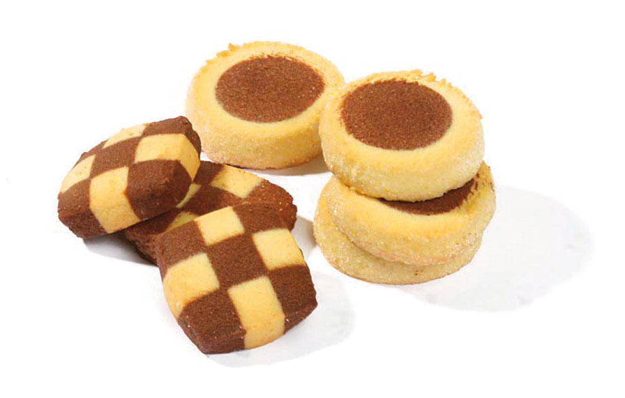 Delicati biscotti da thè con frolla bianca e al cacao.