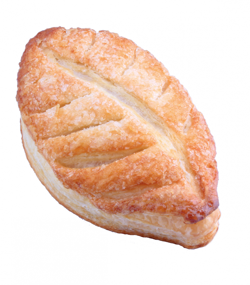 Dorata e fragrante pasta sfoglia, dalla forma simile ad una foglia ricoperta da zucchero cristallino con abbondante farcitura di crema e pezzettoni di mela.