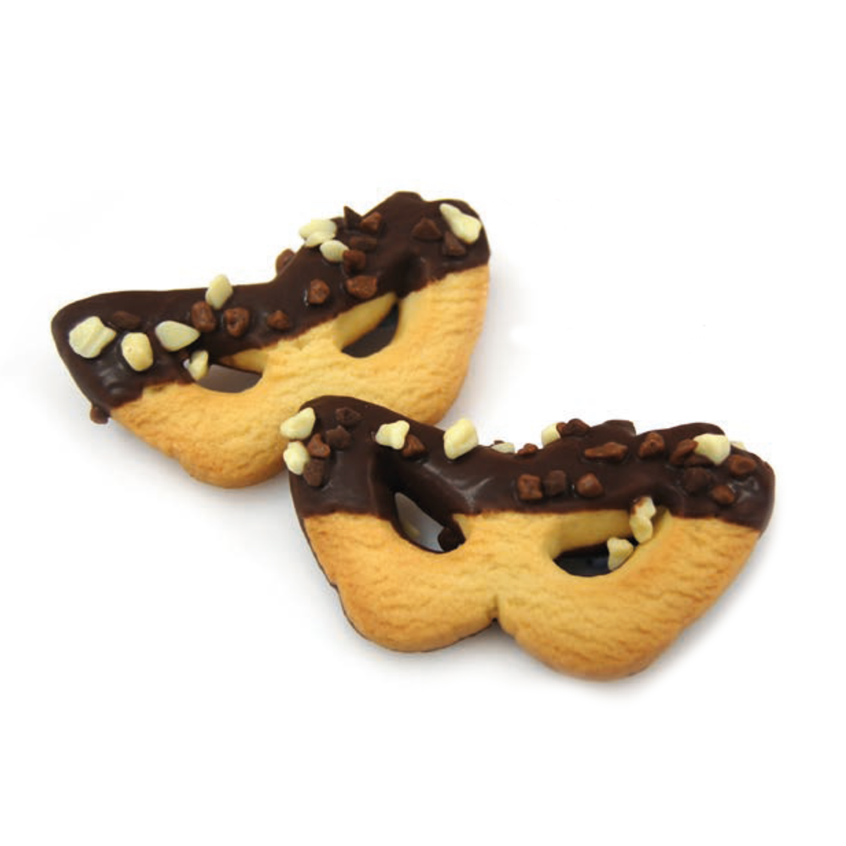 Mascherina di frolla glassata e arricchita con pepite ai 3 cioccolati