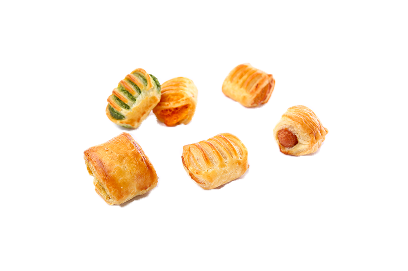 Piccole sfoglie salate ripiene in 6 gusti: wurstel,spinaci e formaggio, tonno, peperoni, prosciutto, olive verdi. Dai sapori più delicati a sapori più decisi, questi salatini aperitivo sono immancabili protagonisti di un aperitivo perfetto.
