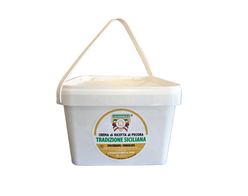 Crema di ricotta di pecora prodotta secondo la tradizione siciliana con siero,ricotta di pecora con l’aggiunta di latte e zucchero.