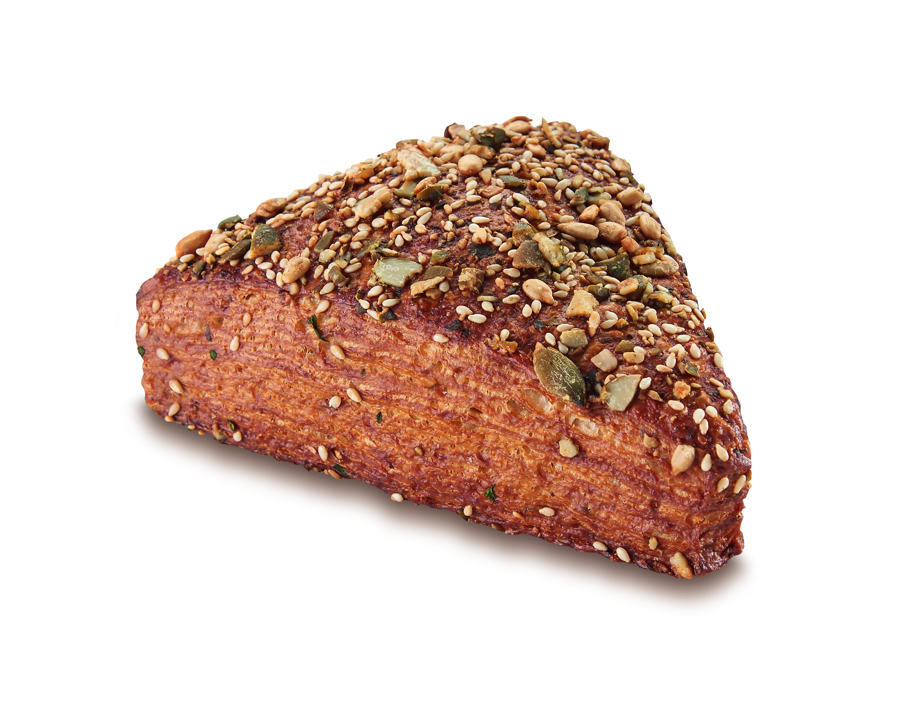 Snack salato di tipo bavarese dall’aspetto e dal sapore rustico, decorato in superficie con semi delicatamente speziati. Ideale da farcire grazie alla sua forma triangolare.