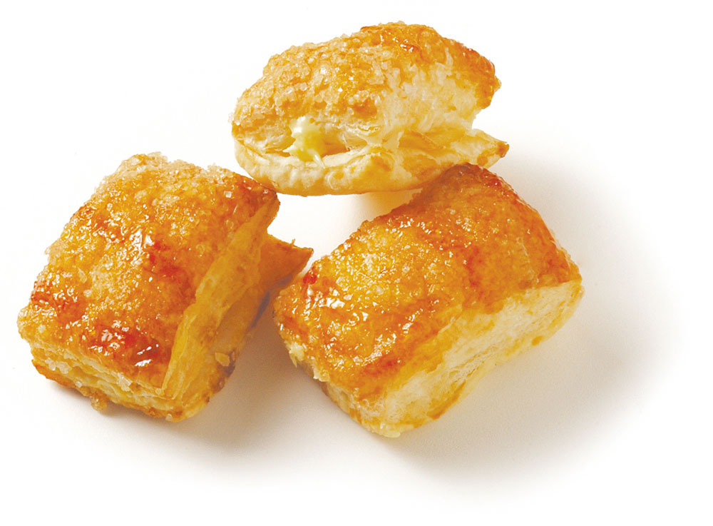 Fragrante pasta sfoglia glassata ripiena di crema al gusto di limone.